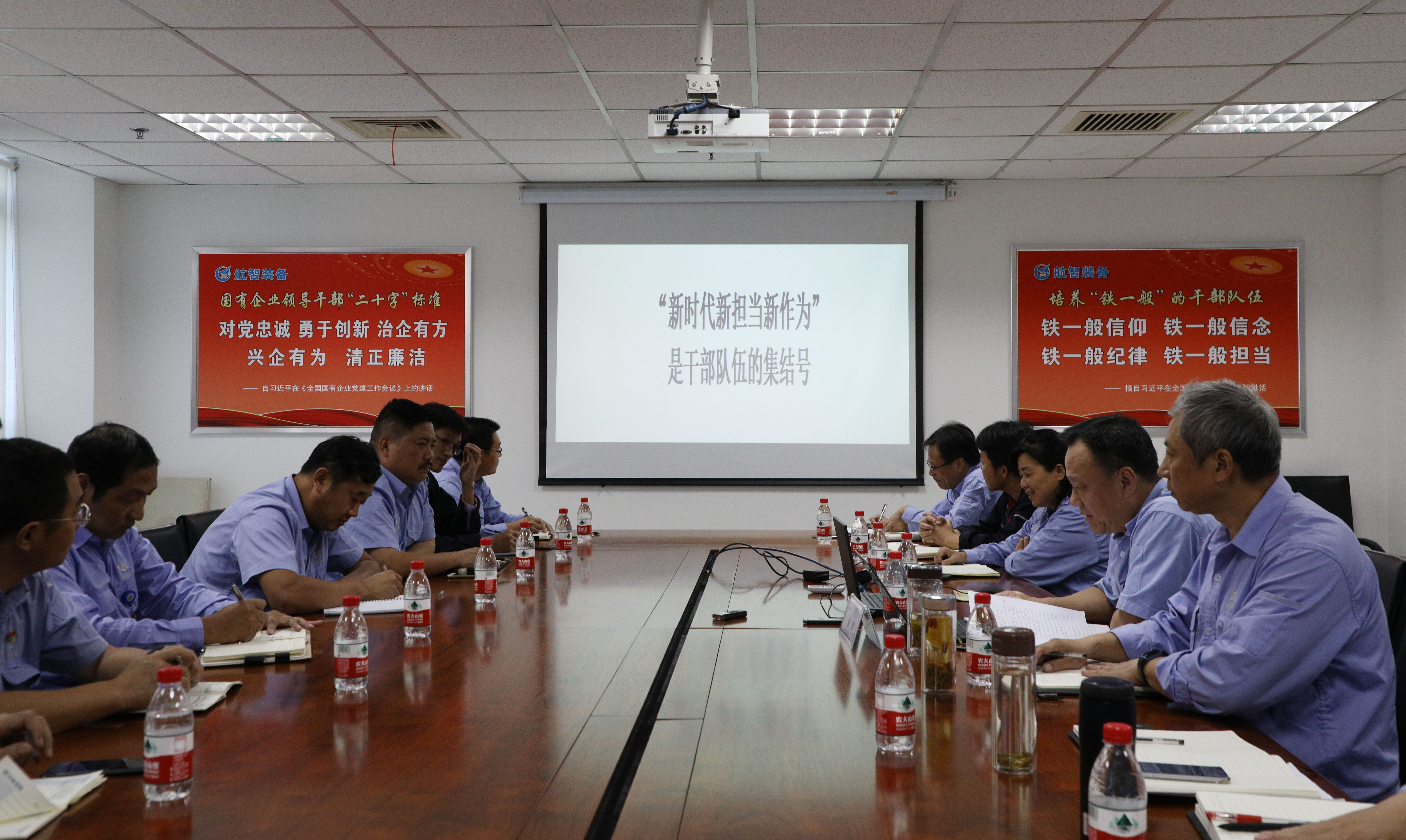 課上,張軍領學了中央、集團公司發(fā)布的關于新時代激勵干部新?lián)?、新作為的系列文件,結合文件精神以及航智裝備的經營管理實際,通過具體的案例分析對航智裝備干部隊伍建設、經營管理工作提出了具體的指導意見。