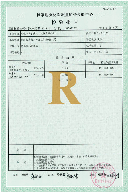 國(guó)家耐火材料質(zhì)量監(jiān)督檢驗(yàn)中心檢測(cè)報(bào)告