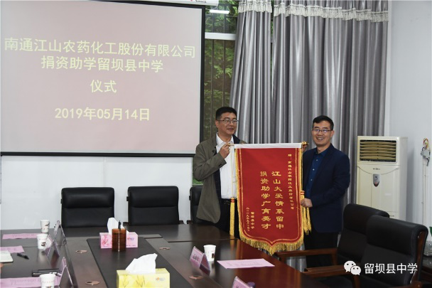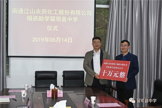 獻上一份愛心,托起一片希望。在這個孕育希望的季節(jié),2019年5月14日南通江山農藥化工股份有限公司捐資助學留壩縣中學儀式在留壩縣中學會議室舉行,捐資助學儀式由留壩縣中學校長楊锃主持。
