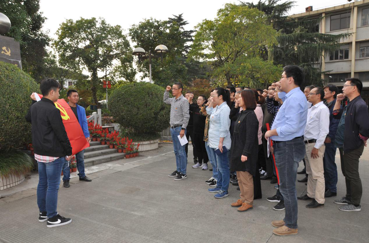 來(lái)到南通獨(dú)立支部紀(jì)念地碑前,在大生集團(tuán)有限公司副董事長(zhǎng)、總會(huì)計(jì)師漆穎斌的熱情接待下,紡織染公司全體黨員聆聽(tīng)了黨辦潘宇關(guān)于獨(dú)立支部光榮歷史的講解,對(duì)其成立的過(guò)程,最初成員,以及偉大意義和作用都有了更為深刻地認(rèn)識(shí)和理解。作為南通最早的黨組織,中共南通獨(dú)立支部的成立點(diǎn)燃了江海大地第一簇革命星火,掀開(kāi)了南通革命史上嶄新的一頁(yè)。 瞻仰紀(jì)念碑,紡織染黨委書(shū)記、董事長(zhǎng)李志宏帶領(lǐng)全體黨員干部莊嚴(yán)地舉起右手,在中國(guó)共產(chǎn)黨南通支部紀(jì)念碑前,面對(duì)火紅的黨旗,重溫入黨誓詞,緬懷革命先輩光榮歷史,深刻感受他們?cè)诟锩鼩q月里,不忘初心,牢記使命,創(chuàng)獨(dú)立支部、干經(jīng)天偉業(yè)的壯志豪情;感受他們?yōu)橹袊?guó)人民謀幸福,為中華民族謀復(fù)興的艱苦卓越歷程。