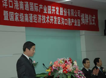 集團董事長、洋口港南通國際產(chǎn)業(yè)園開發(fā)公司董事長陳照東在儀式上致辭。他指出,作為南通國際產(chǎn)業(yè)園建設(shè)的運作平臺,新公司將根據(jù)國家產(chǎn)業(yè)政策導(dǎo)向和洋口港建設(shè)開發(fā)總體規(guī)劃,結(jié)合全市產(chǎn)業(yè)結(jié)構(gòu)調(diào)整戰(zhàn)略,充分發(fā)揮市開發(fā)區(qū)的招商優(yōu)勢和市級國資公司的融資優(yōu)勢,加快開發(fā)建設(shè)步伐;要堅持快節(jié)奏啟動、高起點規(guī)劃、大力度招商、規(guī)范化運作,努力將南通國際產(chǎn)業(yè)園建設(shè)成國有資本積聚、新興產(chǎn)業(yè)特色鮮明的工業(yè)園區(qū),做到“一年一個樣、三年大變樣”,為全市大港口、大園區(qū)、大產(chǎn)業(yè)戰(zhàn)略貢獻力量。