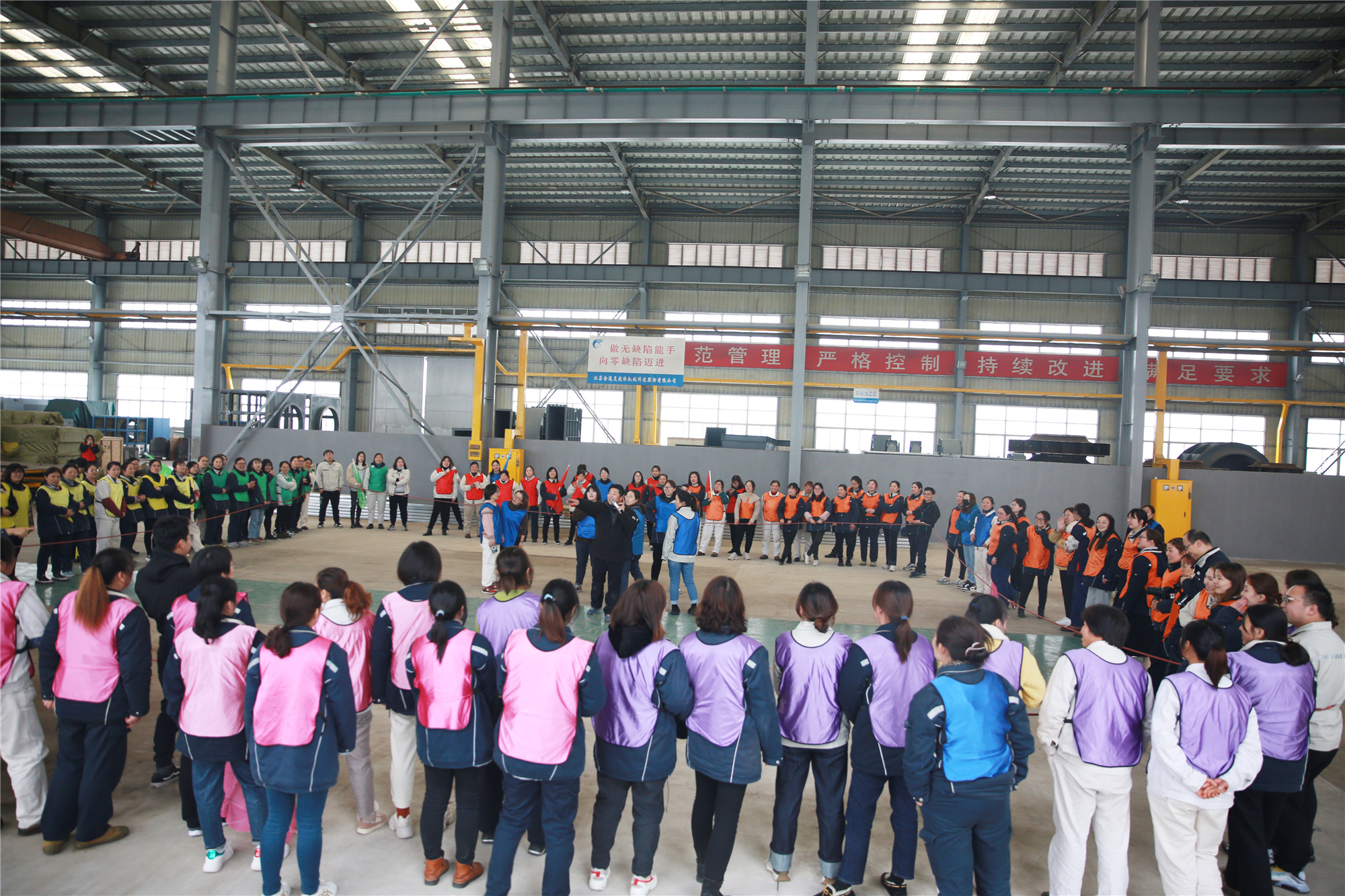 3月8日下午, 一百多名女職工歡聚2號車間,在教練的帶領(lǐng)下,分成了10個小組,按照要求分別設(shè)計(jì)了自己隊(duì)的隊(duì)名、隊(duì)徽、口號、隊(duì)歌,并依次展示了團(tuán)隊(duì)風(fēng)采。在充滿樂趣的熱身小游戲后,便開始了“坦克大戰(zhàn)”、“環(huán)游世界球”、“動力繩圈”等團(tuán)隊(duì)拓展項(xiàng)目。在彼此信任、相互溝通、集體協(xié)作的氛圍中,各小組成功完成了此次拓展任務(wù)。參加此次活動的廣大女職工們有長期伏案的科員,有奮戰(zhàn)一線的工人,也有集團(tuán)中高層領(lǐng)導(dǎo),在新組建的團(tuán)隊(duì)中,大家拋開身份,融入隊(duì)伍,在隊(duì)長的帶領(lǐng)下,克服困難,團(tuán)結(jié)一心,共同為隊(duì)伍加分增光。 此次拓展活動,既緩解了女職工們工作的疲憊和壓力,又增進(jìn)了同事間的友誼,增強(qiáng)了團(tuán)隊(duì)凝聚力,大家在娛樂中感受到團(tuán)隊(duì)的力量。集團(tuán)黨委副書記、工會主席李建兵給女工們送上節(jié)日的祝福,他表示,廣大女職工們在此次活動中充分展示了巾幗風(fēng)采,彰顯出金通靈女工隊(duì)伍的魅力,在今后的工作中,大家要時刻握緊手中的“動力繩”,勁往一處使,力往一處用,跟著團(tuán)隊(duì)的步調(diào),以奮發(fā)昂揚(yáng)的姿態(tài)繼續(xù)前行! |