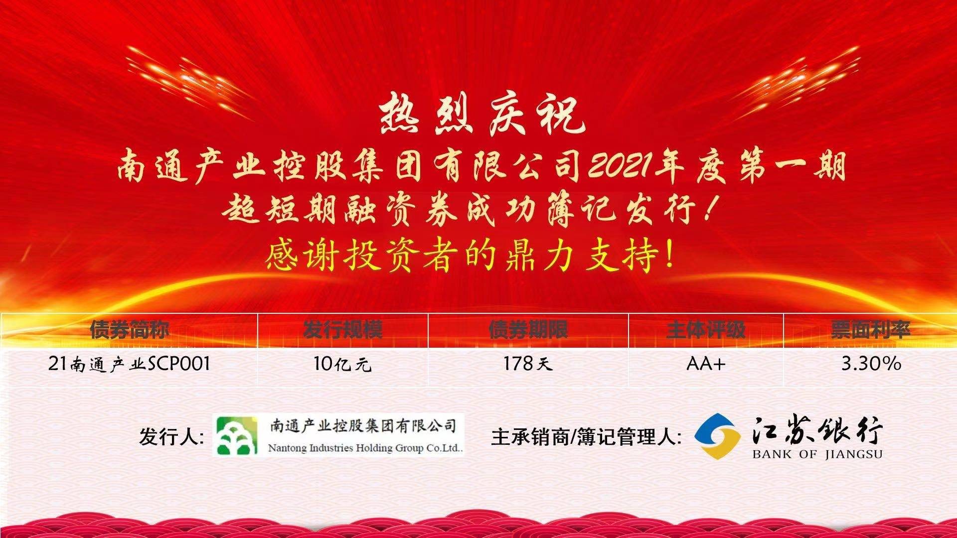 20212 22 產(chǎn)控集團成功發(fā)行10億元超短期融資券。產(chǎn)控集團的良好資質(zhì)得到投資者的認可,10億元資金于下午已滿額募集到位,最終簿記倍數(shù)1.43,票面利率3.3%,比當日估值40BP。