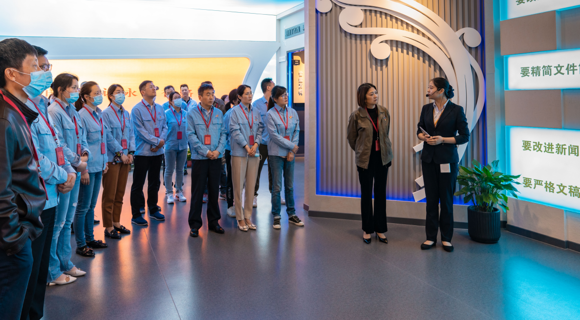 在工作人員的引導下,大家有序參觀了激濁揚清、正本清源、上善若水、勇立潮頭等多個主題展廳。詳實鮮活的案例、令人警醒的懺悔書、花樣百出的受賄物品等等,以圖片、文字、影像等形式呈現(xiàn)在每一名黨員干部面前,使大家深刻認識到“紀律無情,法律帶電”、“莫伸手,伸手必被捉”的道理。 在集團黨委副書記、紀委書記曹燕紅的帶領(lǐng)下,全體黨員重溫了入黨誓詞。