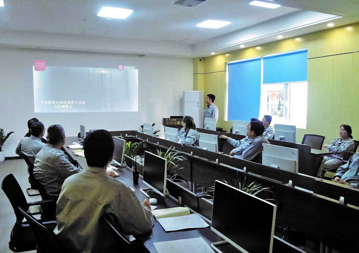 學以致用方為學。阻燃劑作為“江山”第三次創(chuàng)業(yè)的重點產業(yè),在此關鍵節(jié)點上,能否吹響勝利的號角至關重要。全體黨員將信念化為動力,有擔當,有斗志,擰成繩,抱成團,把工作做實做細,有力促進項目進展、積極拓展銷售市場。