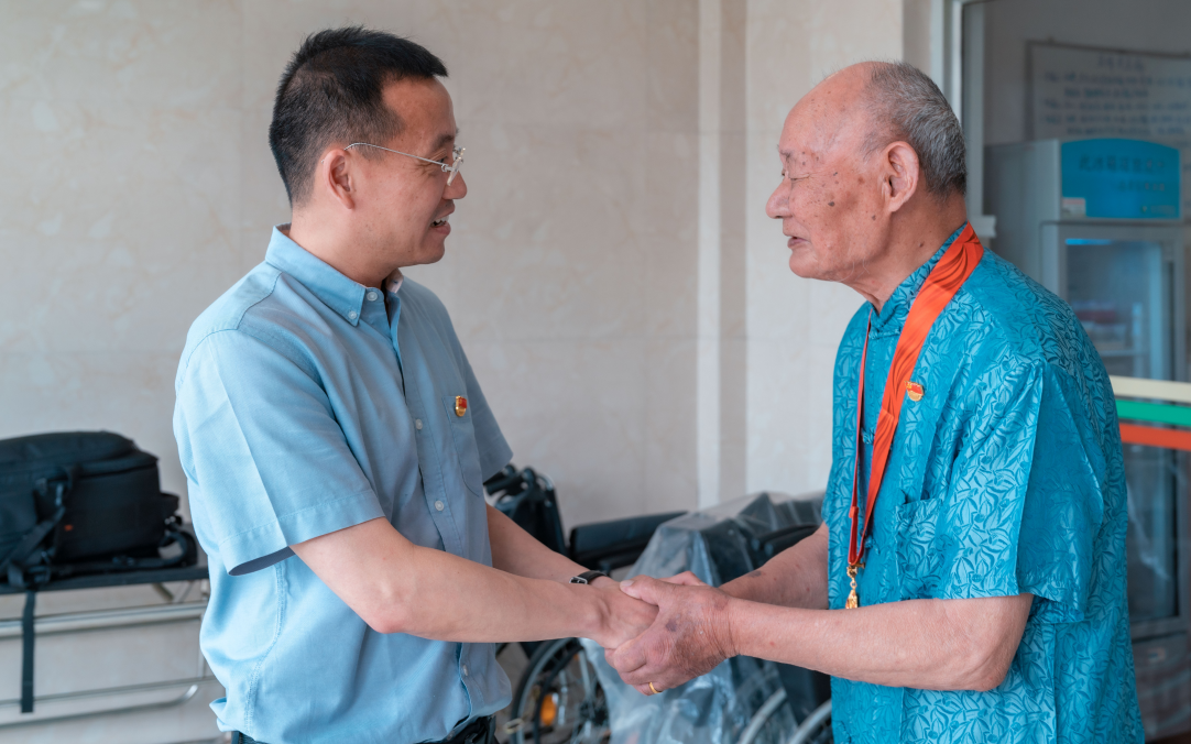 在老黨員家中,尹紅宇為老人家頒發(fā)了紀(jì)念章,向他們表達(dá)了崇高的敬意和深切的問候,并親切詢問了老人們的身體狀況、生活情況,以及當(dāng)年的戰(zhàn)斗歷程,傾聽他們的心聲,叮囑他們要好好保重身體,安享晚年幸福生活。尹紅宇還為離休干部贈(zèng)送了學(xué)習(xí)書籍,并送上黨組織的關(guān)懷。