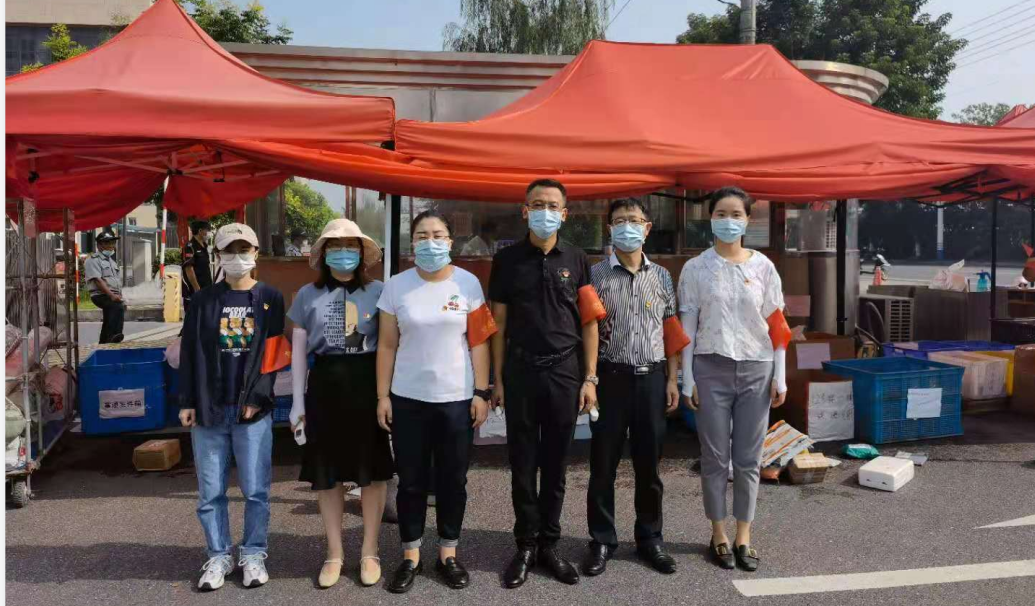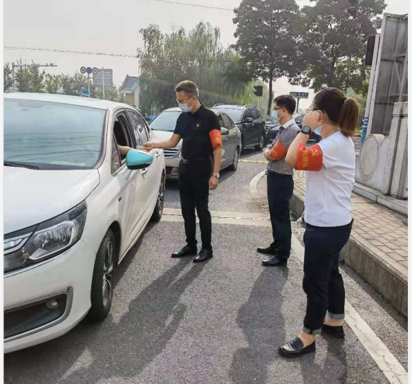 園區(qū)防疫是阻斷疫情傳播最基礎(chǔ)、最關(guān)鍵的環(huán)節(jié)。由于入駐企業(yè)較多,當(dāng)前智匯產(chǎn)業(yè)園門崗排查任務(wù)重,特別是早高峰時(shí)段,車輛人員集中,導(dǎo)致通行不暢。為積極投身園區(qū)疫情防控工作,國盛黨支部主動聯(lián)系園區(qū),組織黨員先鋒隊(duì)和青年突擊隊(duì)分別于8月26日和27日連續(xù)兩天開展防疫志愿活動。早上八點(diǎn),黨員和青年志愿者們佩戴紅袖章,為進(jìn)入園區(qū)的人員測量體溫并檢查行程信息、講解防疫知識,讓群眾從思想上重視、行動上配合,牢記勤洗手、戴口罩、常消毒的防疫要點(diǎn)。