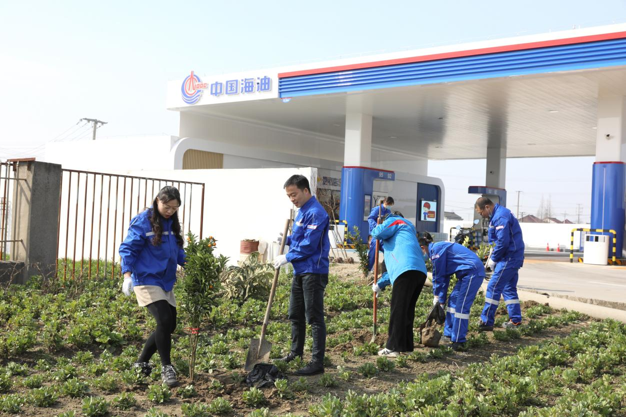 近期,中海油南通公司黨支部組織黨員、青年員工,利用加油站空地,齊心協(xié)力種植綠樹(shù)、栽下果樹(shù)苗,開(kāi)展給生態(tài)加“綠”,為油站添“彩”為主題的系列活動(dòng),號(hào)召?gòu)V大青年員工積極植樹(shù),保衛(wèi)藍(lán)天碧水、綠化美好油站。