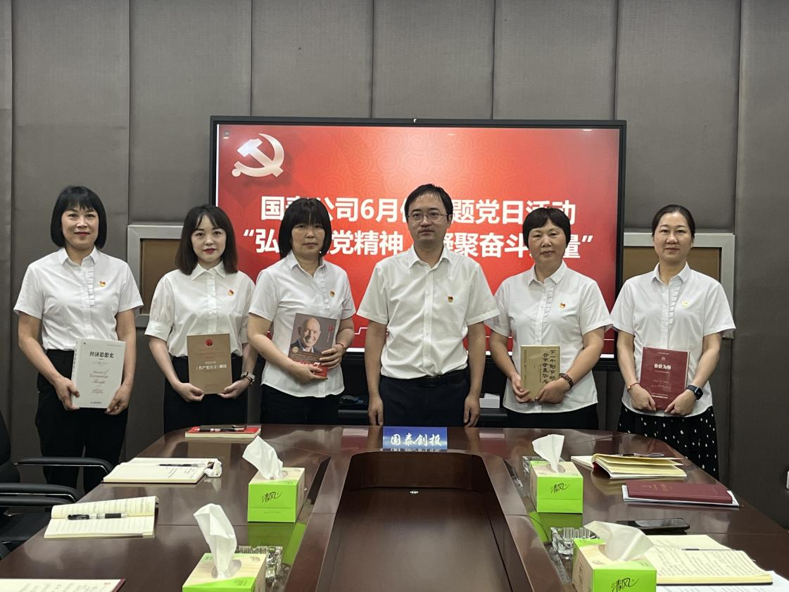 為深入貫徹落實(shí)黨的二十大精神和習(xí)近平新時(shí)代中國特色社會(huì)主義思想,慶祝中國共產(chǎn)黨成立102周年。6月30日,國泰公司黨總支開展“弘揚(yáng)建黨精神,凝聚奮斗力量”主題黨日活動(dòng),國泰公司全體員工參與活動(dòng)。