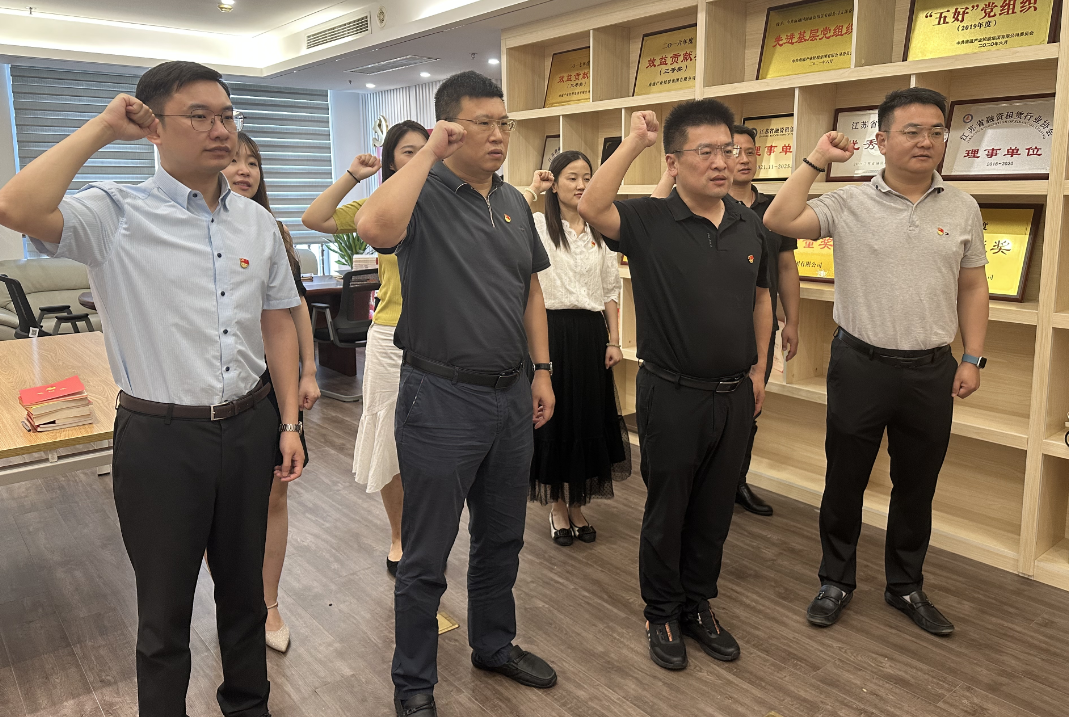 為有形有感增強廉潔教育的牽引力和感召力,進一步強化黨員干部廉潔自律意識和拒腐防變能力,724日下午,國潤租賃黨支部開展政治生日憶初心 清正廉潔擔使命主題黨日活動,支部書記陳大鵬帶領全體黨員重溫入黨誓詞,黨員們面對黨旗,緊握右拳,莊嚴宣誓,4名黨員同志圍繞入黨經歷、工作經歷和成長經歷等暢談“政治生日”感言,回顧入黨初心。