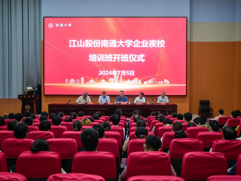 7月5日,“江山夜校”第一期開班儀式在南通大學(xué)隆重舉行,120名江山學(xué)員參與,開啟了另一種夜生活的體驗(yàn)。南通大學(xué)黨委常委、副校長(zhǎng)華亮,南通市總工會(huì)黨組成員、副主席成飛,江山股份黨委副書記、工會(huì)主席樊文新出席開班儀式并講話。“江山夜?!睂W(xué)員袁鳴作為學(xué)生代表發(fā)言,開班儀式由江山股份工會(huì)副主席吳玉強(qiáng)主持。
